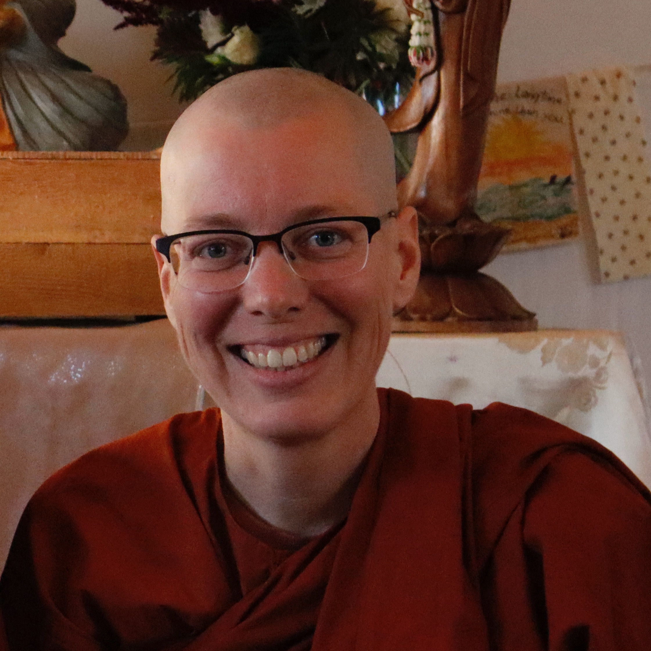 Ven. Juṇhā began her monastic life at Āloka Vihāra in 2022 shortly before it came to an end and first took novice ordination in 2023, with Ayya Ānandabodhī as her preceptor. She was a founding member of Pārāyana Vihāra and trained there until September 2025. After a reluctant return to lay life, she took novice ordination again in December 2025 with Ayyā Santussikā as her preceptor.
